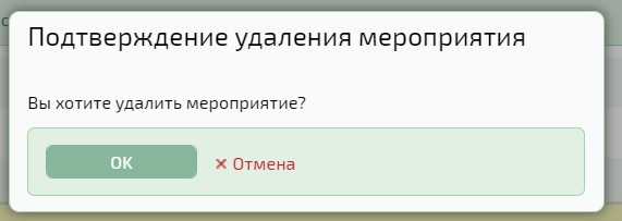 Нажмите «ОК» для удаления или «Отмена» для отмены удаления мероприятия из списка.