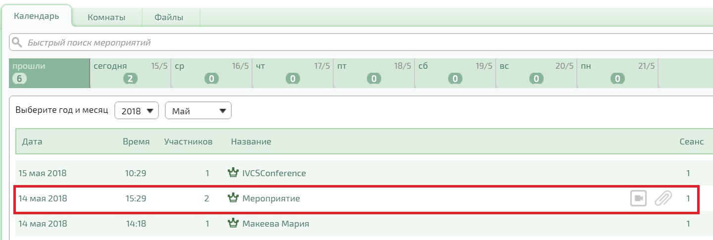 Просмотреть прошедшие мероприятия можно во вкладке «Календарь».