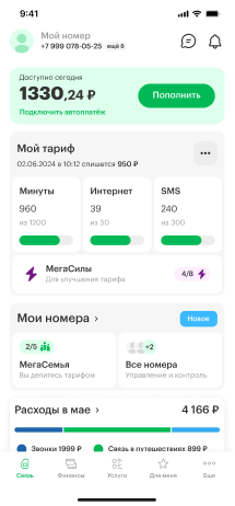 - 1Зайдите в приложение «МегаФон» или в Личный кабинет.