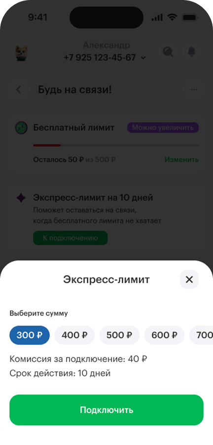 Экспресс‑лимит «Будь на связи!» может быть доступен только при наличии индивидуального предложения.